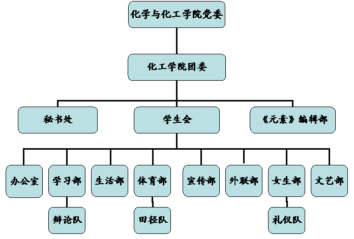 第七条:化学与化工学院学生会一般由十八至二十三名学生干部组成,任期一年,主持学生会纳新及日常工作,学生会一般情况下每一周召开一次例行工作会议。