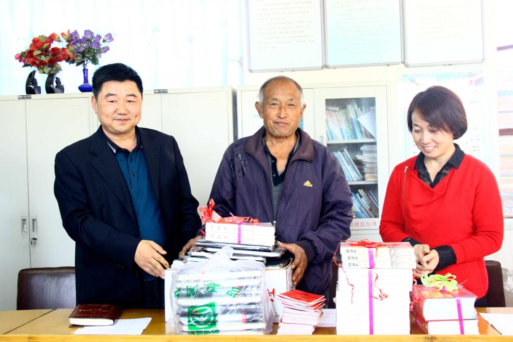 接着,化工学院党委书记舒永安代表学院向界石堡村党员活动室赠送了习近平系列讲话读本、党章、新华字典、《平凡的世界》、《路遥传》等书籍,村干部代表愉快地接受了捐赠。