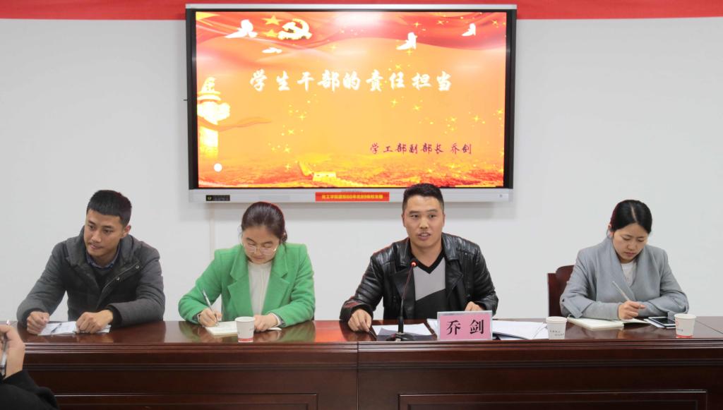之后,乔剑老师提出了现在学生干部中普遍存在的问题:热情阶段性、功利化、官僚化,工作学习兼顾不佳等。希望学生干部们能进行更多的交流与学习,反省自身,做到不骄不躁,让老师放心,让同学满意,将继承与创新结合的带头示范作用,和大家一起努力,共同进步。