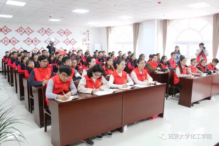 在学工部副部长、学生宣讲团策划人乔剑老师的组织带领下,化工学院学生宣讲团成员积极配合,采访组一行人来到能源化工大楼217会议室对此次宣讲活动进行采访录制。宣讲会上,延安大学学生宣讲团系统传达了党的十九大报告内容,重点解读了习近平新时代中国特色社会主义思想内涵和基本方略,要求同学们坚决以党的十九大精神为指引,高举旗帜,维护核心,不忘初心,顽强拼搏,在激情奋斗中绽放光芒。