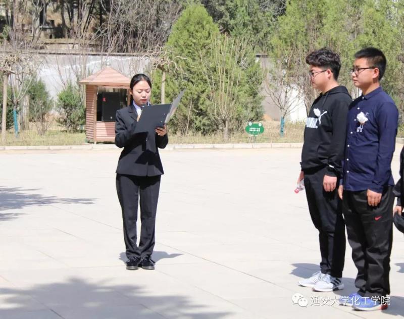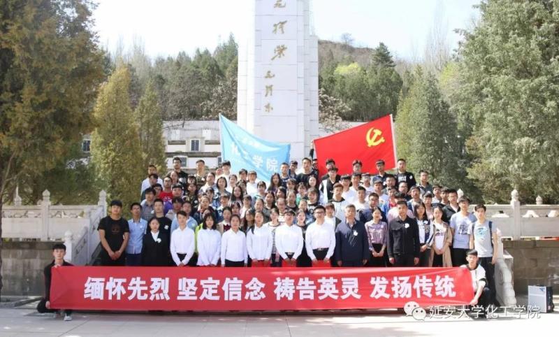 为缅怀革命先烈,坚定理想信念,弘扬民族精神,2018年4月2日早上10时,在院党委副书记刘雨录、辅导员徐菁、张哲豪的带领下,学院学生党员、第五十二期入党积极分子、能化17与应化17共130余人徒步前往延安“四八”烈士陵园开展以“缅怀先烈,坚定信仰,祭奠英灵,发扬传统”为主题的清明节祭奠革命英烈主题活动,本次活动由刘欢同学主持。