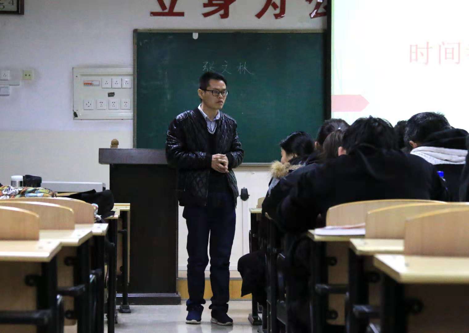 张文林博士做了《时间去哪了》的报告。报告中他向同学们分享了自己在清华大学的读博士经历,希望同学们在大学期间就合理安排时间做好自己的成长生涯规划,不要虚度光阴,耗费青春,成功属于有准备的人,属于勤奋实干的人。