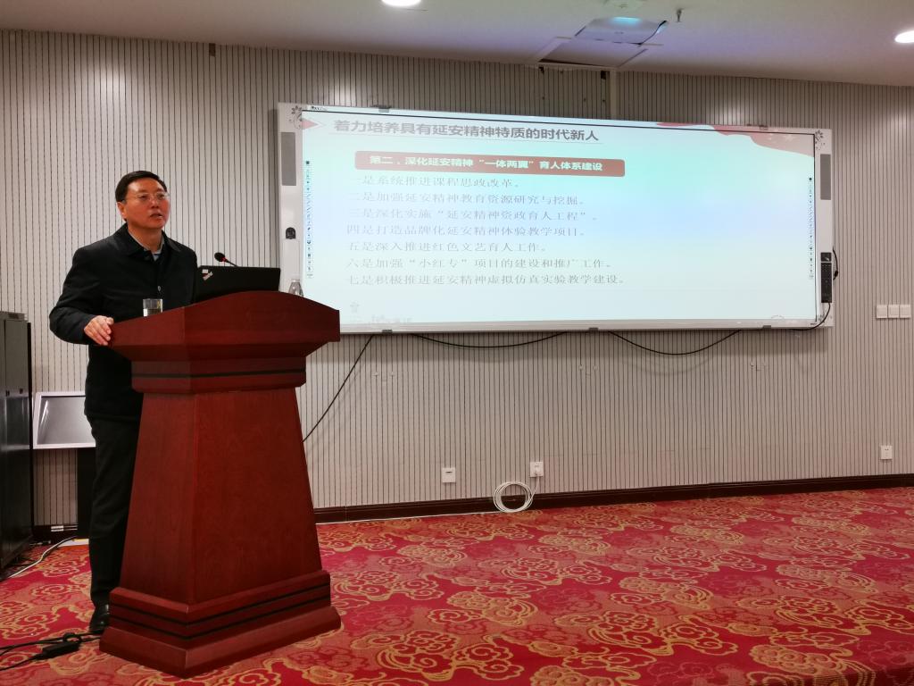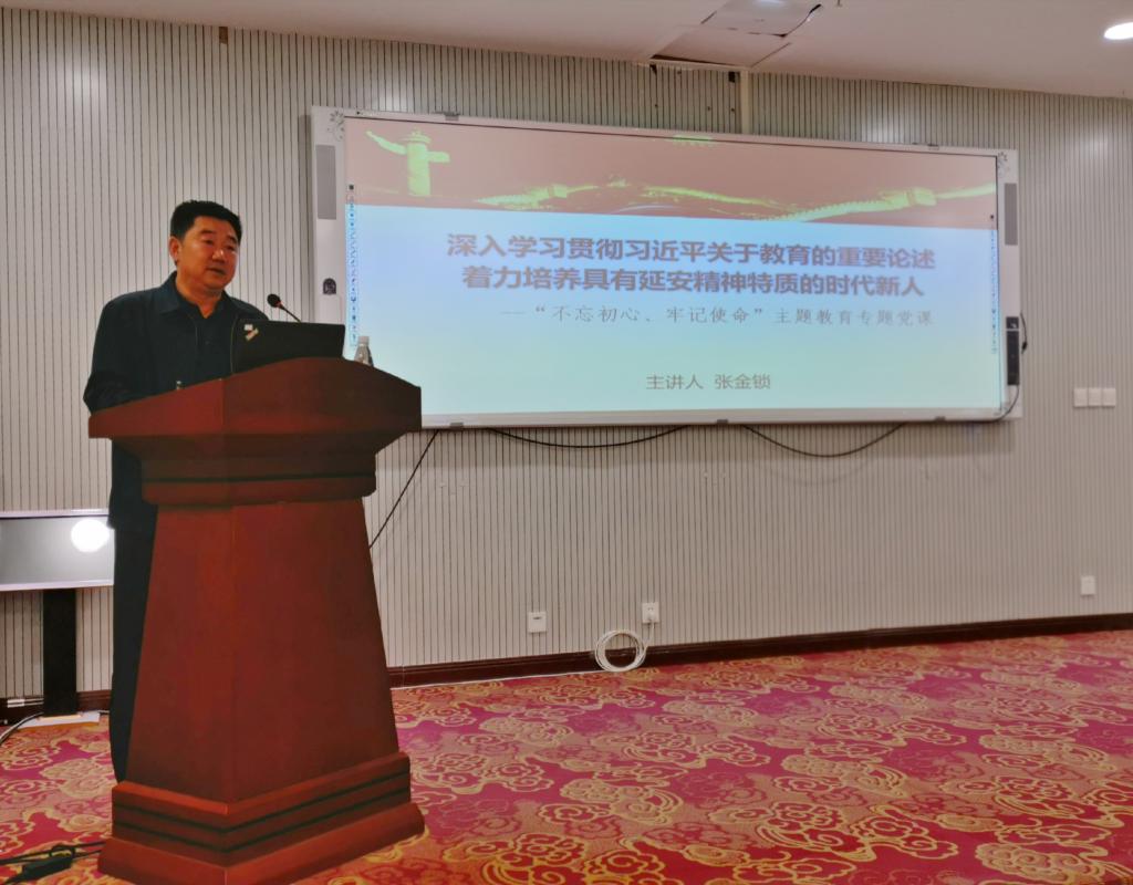 张校长从延安时期的中国共产党人是践行“不忘初心、牢记使命”的典范切入,深入解读了共产党人的初心与使命,就是为人民谋幸福、为中华民族谋复兴;从四个迫切、三个维度和我党十四次集中思想教育的成效入手,阐述了党中央开展“不忘初心、牢记使命”主题教育的重大意义。并提出了一个时代课题:面对新时代,延大的使命是什么?就是落实习近平总书记的批示精神,把延安大学建设得更有特色更有水平。