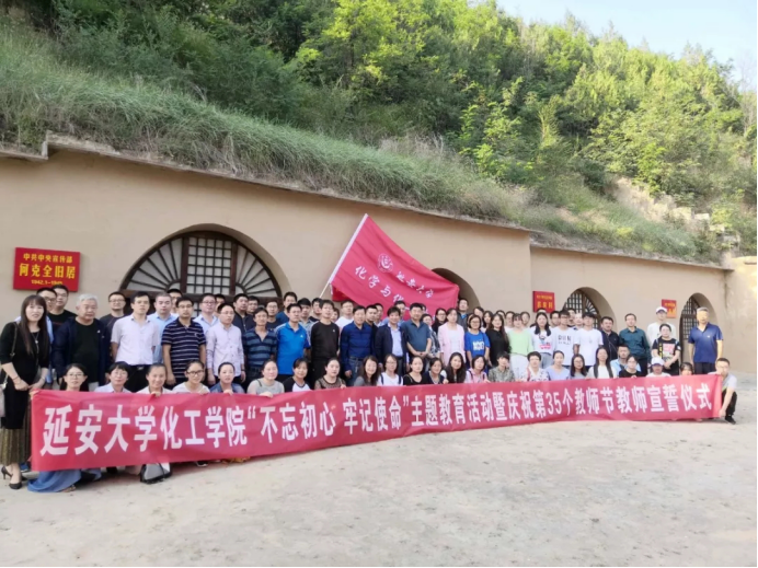 2019年9月6日下午,化工学院于杨家岭中宣部旧址举行教师节教师宣誓大会暨“不忘初心、牢记使命”主题教育,参加此次活动的人员有在校全院教职工、3名研究生与本科生中20名师范专业学生代表共约100人,化工学院党委书记舒永安主持会议。