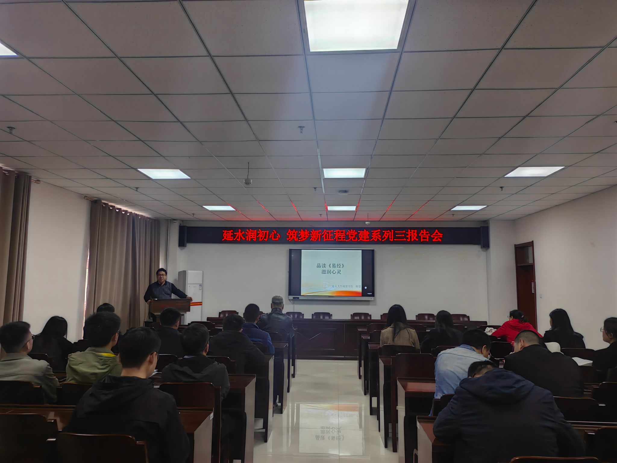 为进一步深化教育教学改革,提升我院青年教师的传统文化素养,树立文化自信,弘扬中国精神。5月10日下午,学院邀请延安大学政法与公共管理学院韩盟博士在化工大楼216会议室做了“品读《易经》·滋润心灵”为主题的传统文化报告。学院青年教师参加了报告会,报告会由院党委书记刘雨录主持。