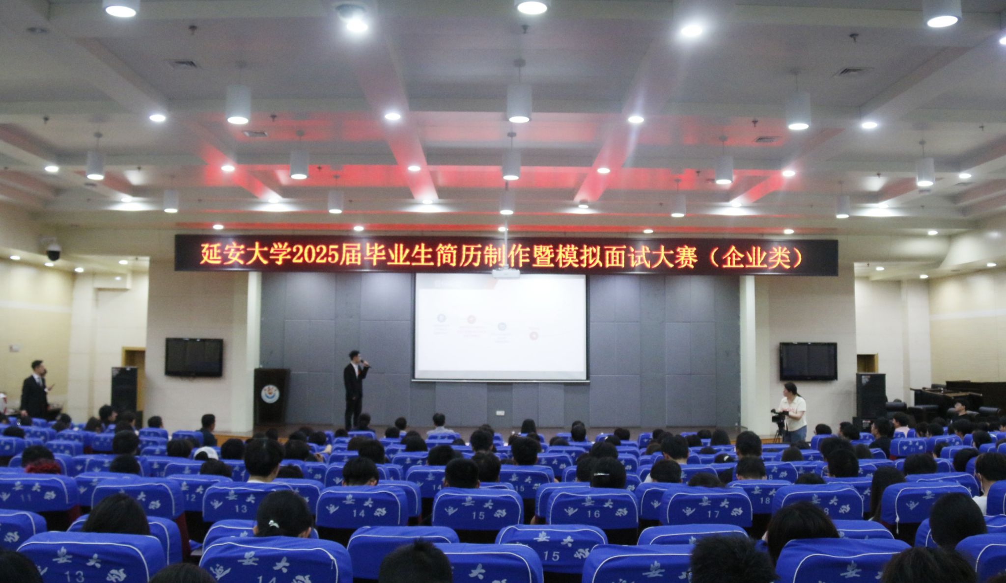 5月8日下午,由延安大学学生处主办,化学与化工学院承办的延安大学2025届毕业生简历制作及模拟面试大赛(企业类)在杨家岭校区图书馆十楼报告厅举行。物理与电子信息学院党委副书记肖金学、延安水务环保集团人力资源部副部长任红翠、中公教育资深讲师万刘军、化学与化工学院教学秘书丁涛、生命科学学院组织员刘登强参加并担任评委,学生处副处长赵鹏飞到会指导大赛。来自全校400余名学生现场观摩了大赛。