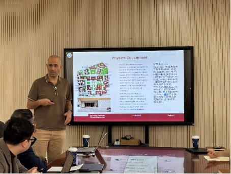 2025年4月21日,应化学与化工学院的邀请,意大利罗马第一大学物理系教授Ernesto Placidi来访我院,副校长付峰、国际处、化学与化工学院领导班子和教师代表在能源化工大楼215会议室参加了学术报告会和交流座谈会。