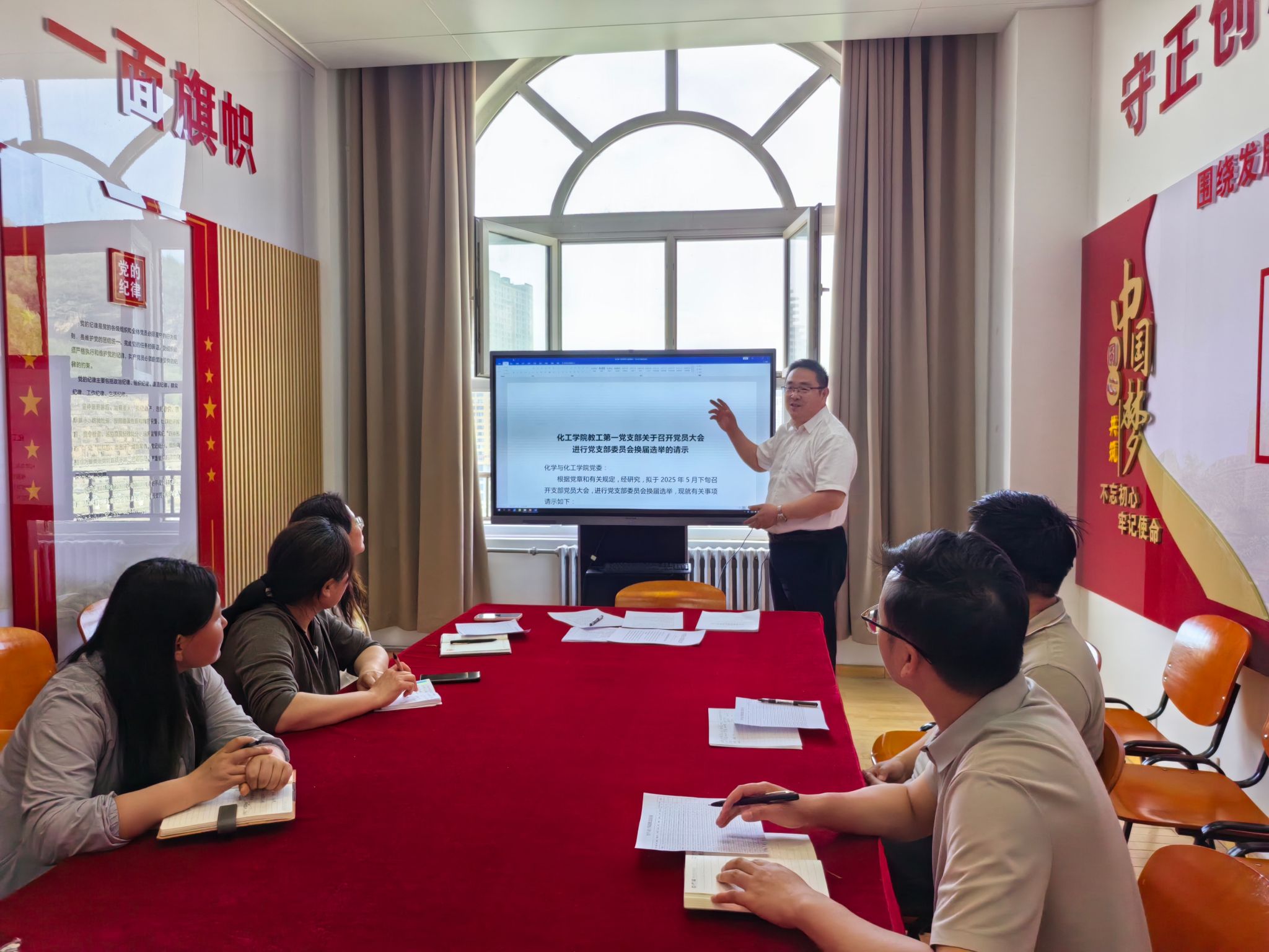 会议传达了学校2025年延安精神强党建贯彻“三一”工程重点任务的安排,并对各支部的重点任务要求进行了明确安排。通过“组织生活规范化、党员教育常态化、实践活动品牌化”三大抓手,致力于打造红色育人阵地。会议部署了基层党组织换届工作,要求各支部严格执行《基层组织选举工作条例》。明确时间节点,规范选举流程,旨在确保换届工作公开透明、平稳有序进行。会议进行了学院基层党组织调整方案及党员隶属关系的优化调整,通过推动党建资源整合与组织效能提升,构建“党委统筹、支部联动、党小组落地”三级管理体系。会议细化了党小组建设标准,明确了党小组设立原则、职能定位及运行机制。要求各支部结合学科特点灵活设置党小组,强化其在理论学习、党员监督、服务师生中的“神经末梢”作用。会议强调了支部材料要进行标准化管理,重点规范“三会一课”记录、党员发展档案及活动台账。实行“季度抽查、年度考评”机制,确保党建工作有迹可循、有绩可考。会议研讨了主题党日与学科发展、社会服务融合路径的方案,鼓励各支部策划“党建+科研”“党建+实践”等特色活动,形成“一支部一品牌”格局。将党建工作与学院的中心工作紧密结合,充分发挥党建工作的引领作用,促进学科发展和社会服务水平的提升。会议学习了《违反中央八项规定及其实施细则精神典型案例》,通过剖析违反中央八项规定精神典型案例,开展了廉政警示教育。要求全体党员以案为鉴、严守纪律,筑牢拒腐防变思想防线。