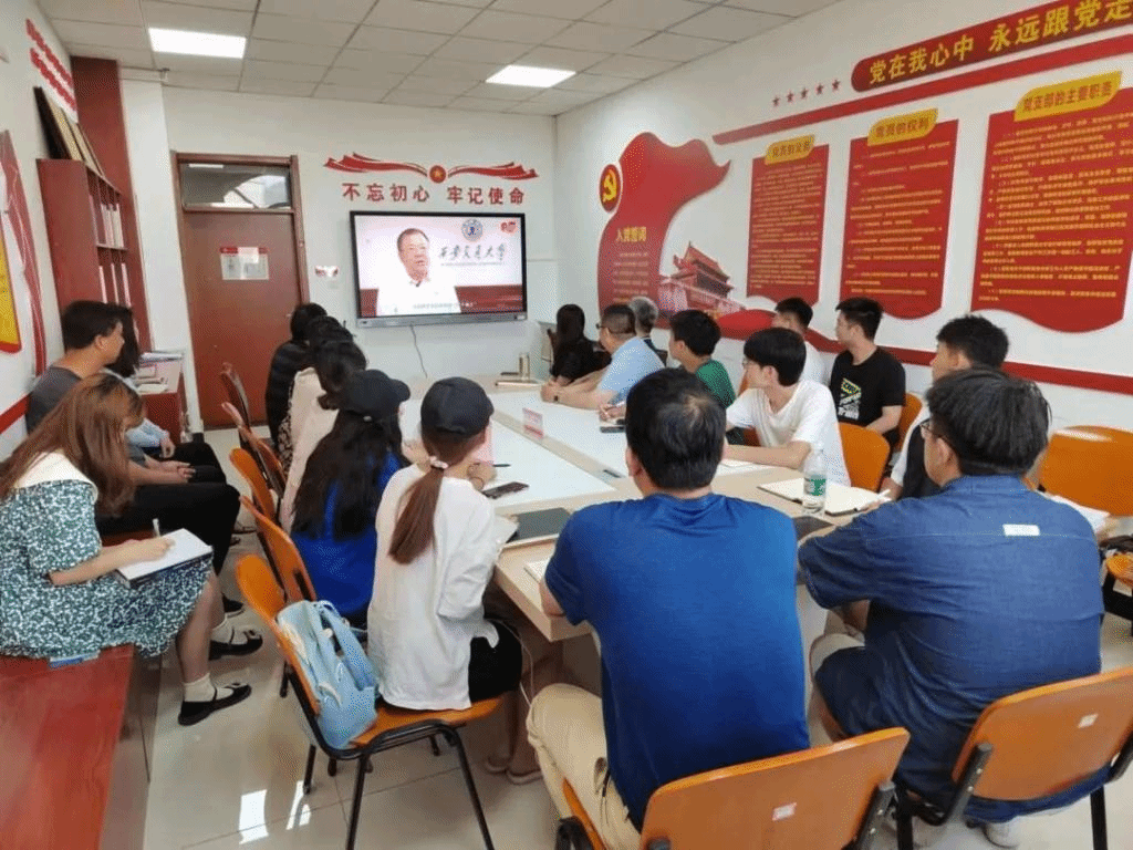 为进一步坚定听党话、跟党走的决心,点亮信仰之光,筑牢育人之路,夯实党建之基。6月17日9:00,化学与化工学院本科生党支部于224集体观看学习“牢记嘱托,勇毅前进”2022年高校党组织示范微党课第二讲,全体师生党员参加,参会人员有化工学院院党委书记刘雨录、院长张琰图、院党委副书记赵芝瑞、党委组织员徐菁、教学秘书丁涛、辅导员苏清元、刘咪,会议由徐菁同志主持。