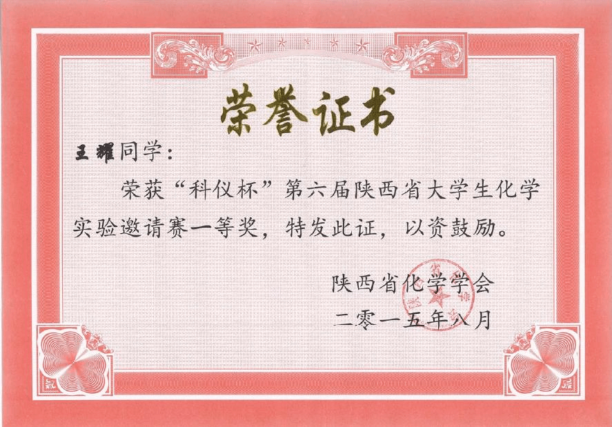 第六届陕西省大学生化学实验邀请赛一等奖